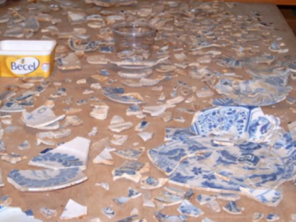Potten, bekers en honderden scherven kwamen vanaf deze locatie naar boven. Met engelengeduld en vasthoudendheid heeft de werkgroep veel bijzondere potten en bekers weer tot één geheel gebracht.